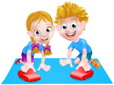 漫画の男の子と女の子の赤いおもちゃの車で遊ぶ のイラスト素材 ベクタ Image